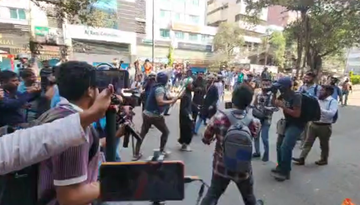 তখন আবারও কয়েকরাউন্ড টিয়ারশেল নিক্ষেপ করে আইনশৃঙ্খলা রক্ষাকারী বাহিনীর সদস্যরা। এসময় হিজবুত তাহরীরের কর্মীদেরও ইট পাটকেল ছুড়তে দেখা গেছে।