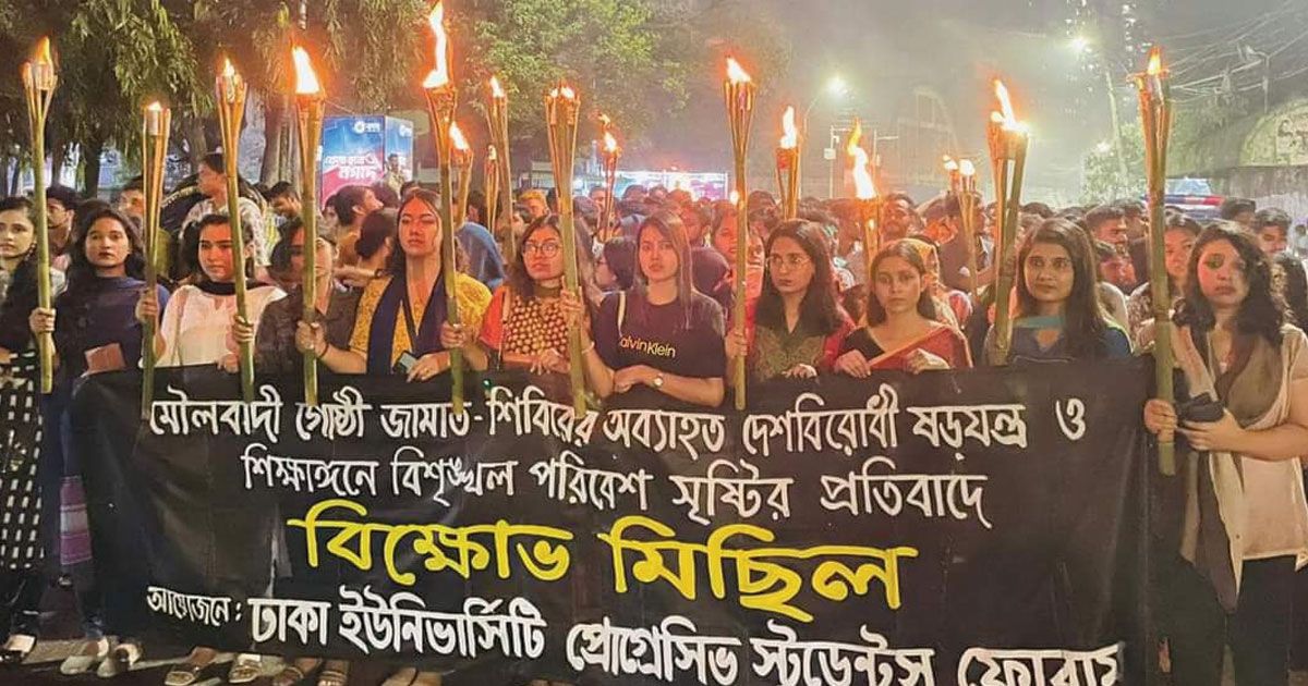 ধর্ষকদের প্রকাশ্য মৃত্যুদণ্ডের দাবিতে ঢাবিতে মশাল মিছিল