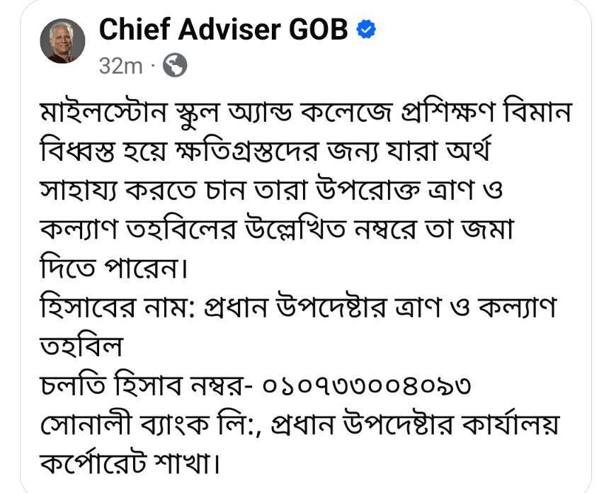 সমালোচনার মুখে প্রধান উপদেষ্টার আর্থিক সাহায্য চাওয়ার পোস্ট উধাও