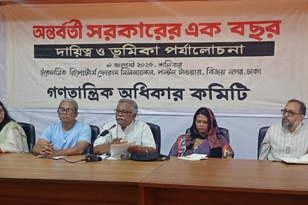 শনিবার (৯ আগস্ট) দুপুরে রাজধানীর বিজয়নগরে ইকোনমিক রিপোর্টার্স ফোরাম মিলনায়তনে গণতান্ত্রিক অধিকার কমিটি আয়োজিত ‘অন্তর্বর্তী সরকারের এক বছর: দায়িত্ব ও ভূমিকা পর্যালোচনা’ শীর্ষক সেমিনারে সভাপতির বক্তব্যে তিনি এসব কথা বলেন। সেমিনারে গত এক বছরে বর্তমান অন্তর্বর্তী সরকারের বিভিন্ন কর্মকাণ্ডের পর্যালোচনা করেন বক্তারা। এতে বিভিন্ন সামাজিক, সাংস্কৃতিক ও শ্রমিক সংগঠনের প্রতিনিধিরা অংশ নেন।