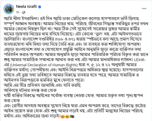 নীলার পোস্টটি যুগান্তরের পাঠকদের জন্য হুবহু তুলে ধরা হলো-